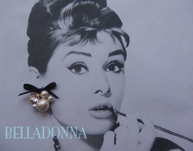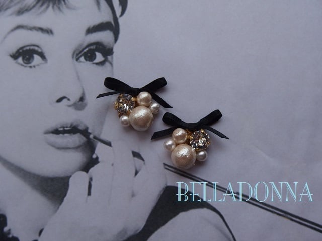 パールとビジューを施し、上にリボンを組み合わせたピアスです。